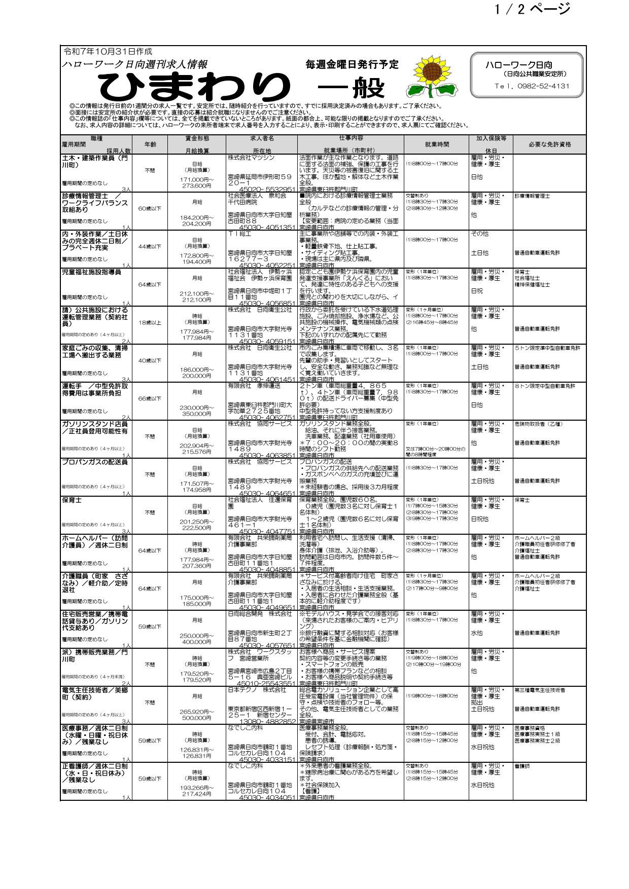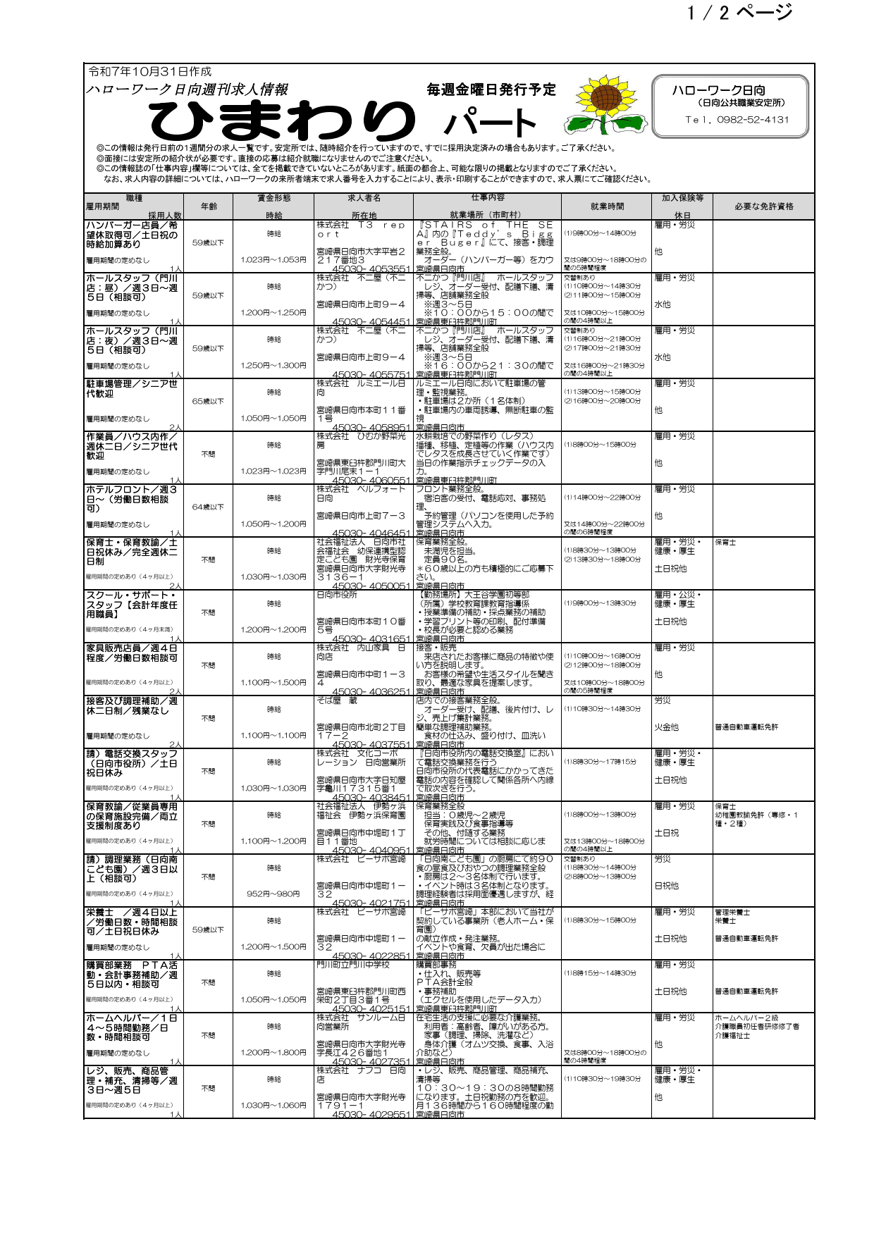 ハローワーク日向求人情報(フルタイム、パート)R7.10.31(金)発行