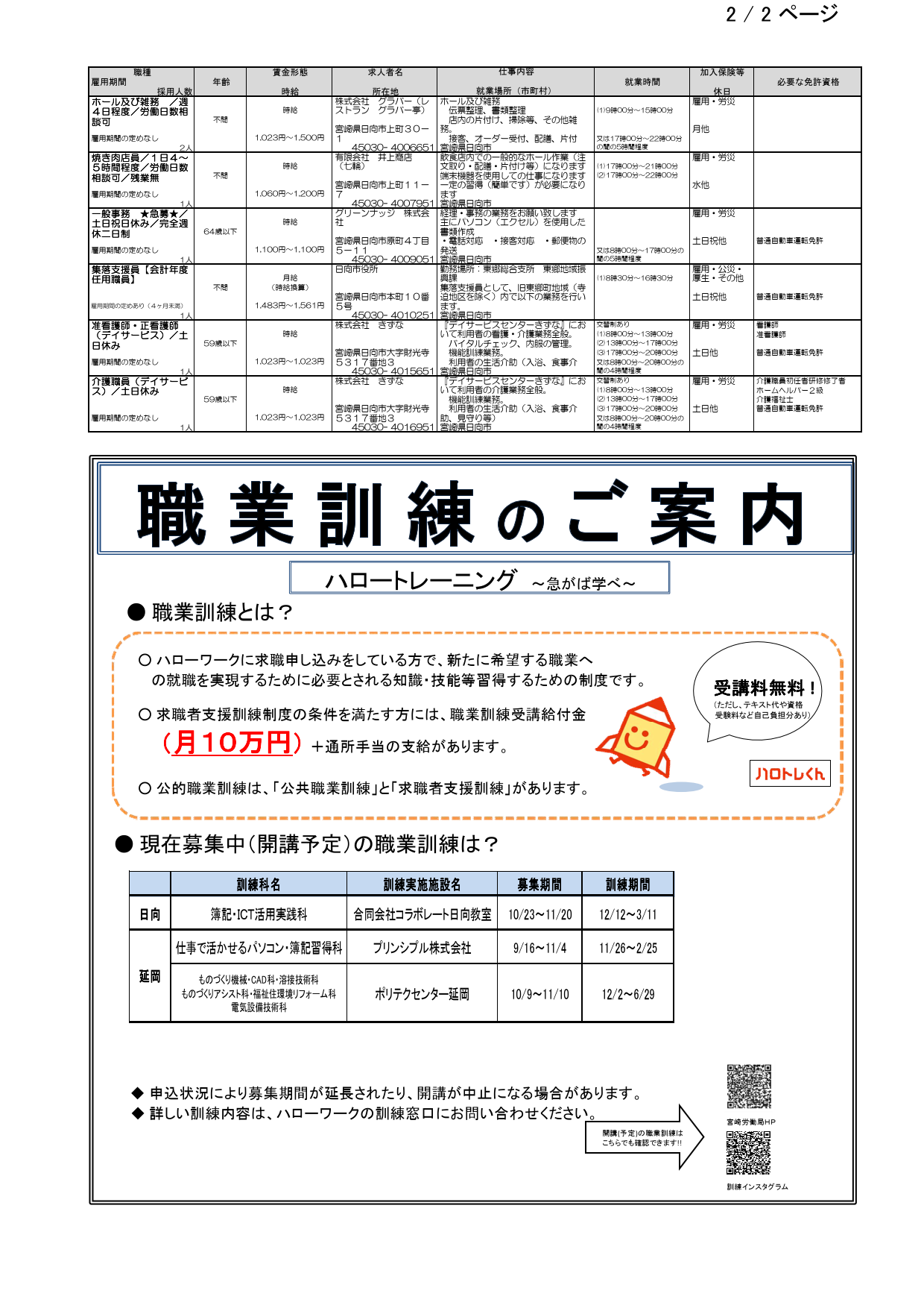 ハローワーク日向求人情報(フルタイム、パート)R7.10.24(金)発行