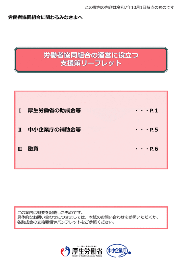【労働者協同組合の運営に役立つ支援策リーフレット】
