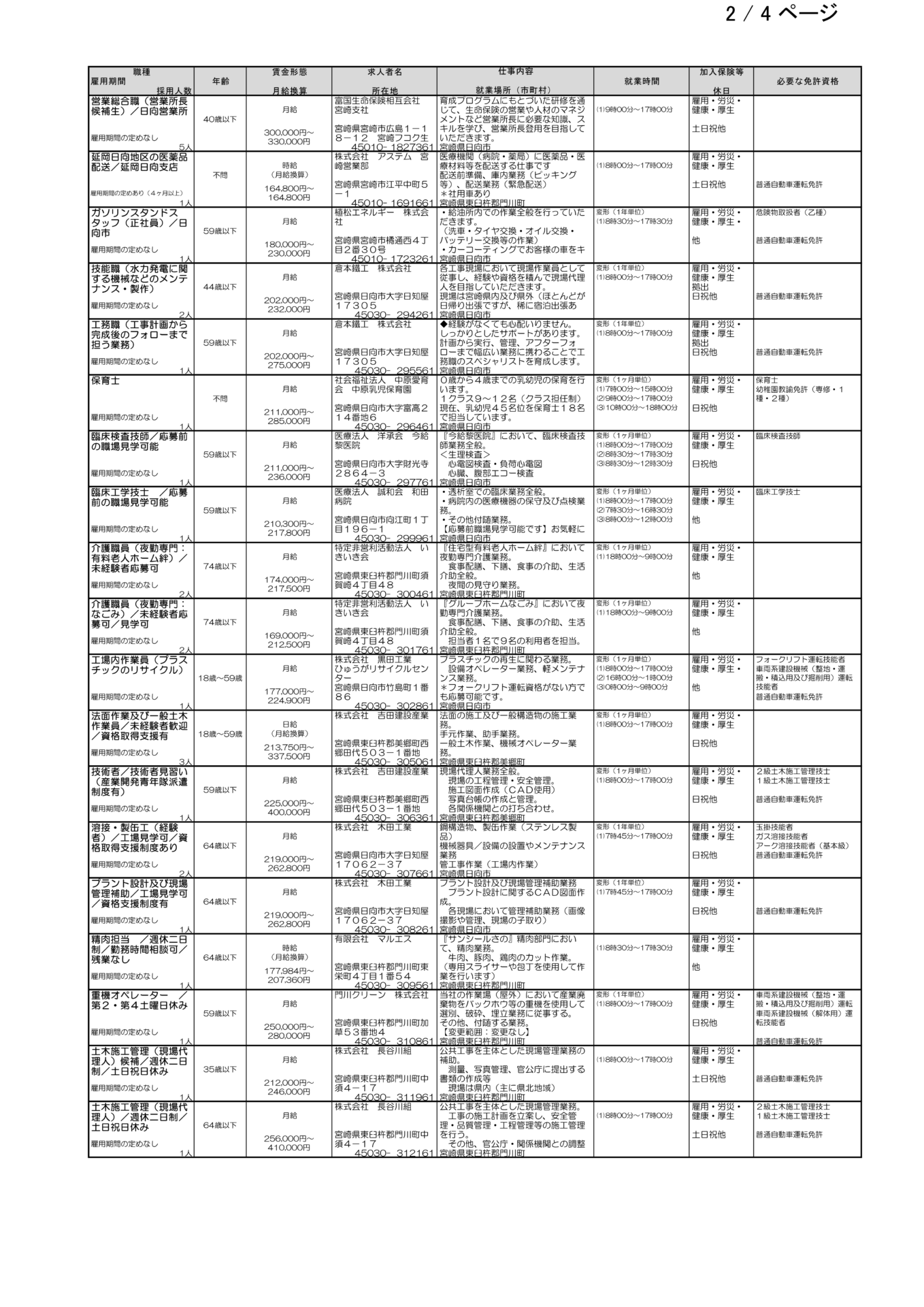 - この情報誌の「仕事内容」欄等については、全てを掲載できていないところがあります。紙面の都合上、可能な限りの掲載となりますのでご了承ください。なお、求人内容の詳細については、ハローワークの来所者端末かハローワークインターネットサービスで求人番号を入力することにより確認できます。
