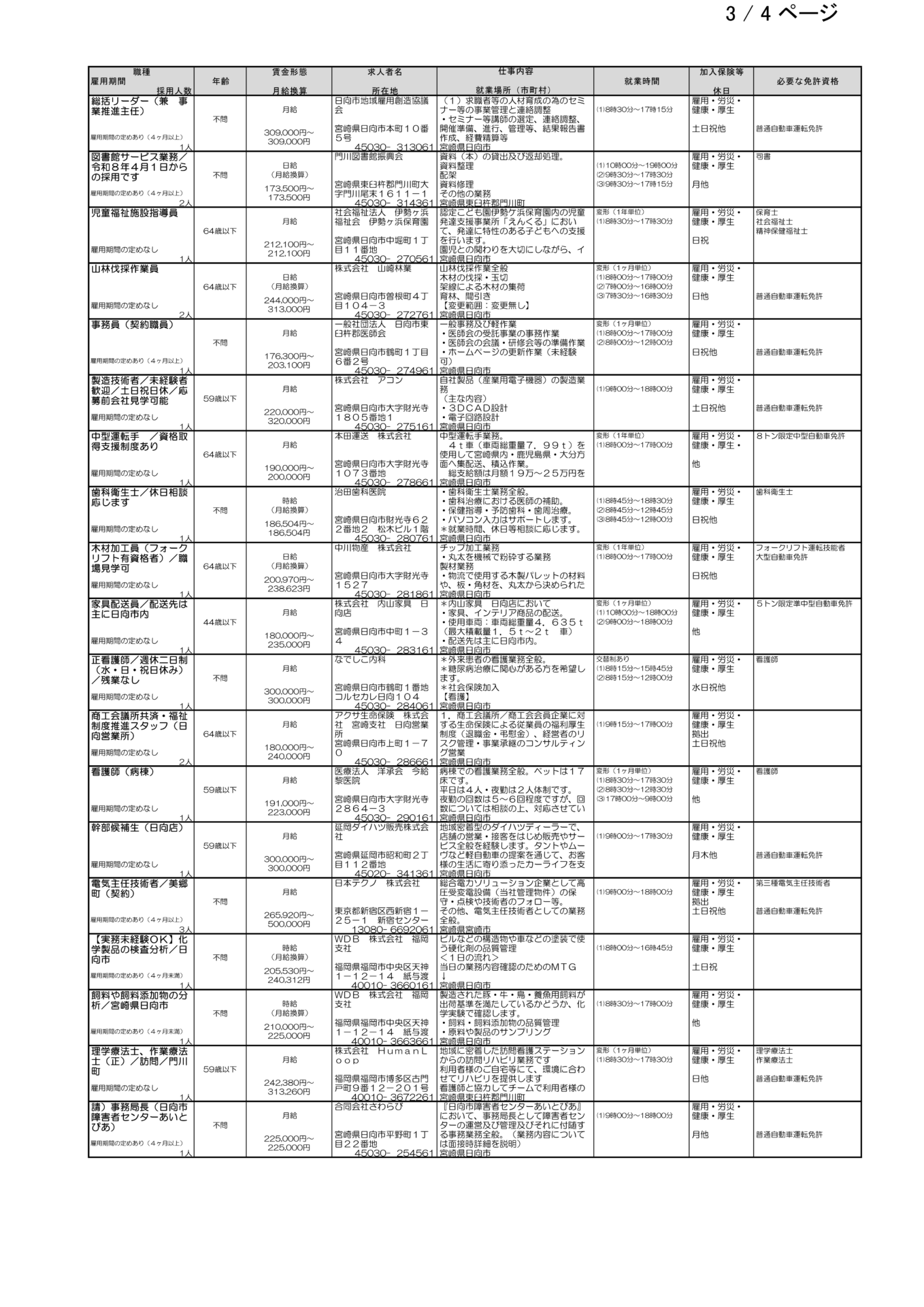 - 掲載している求人情報は発行日前の1週間分の求人一覧です。安定所では、随時紹介を行っていますので、すでに採用決定済みの場合もあります。ご了承ください。