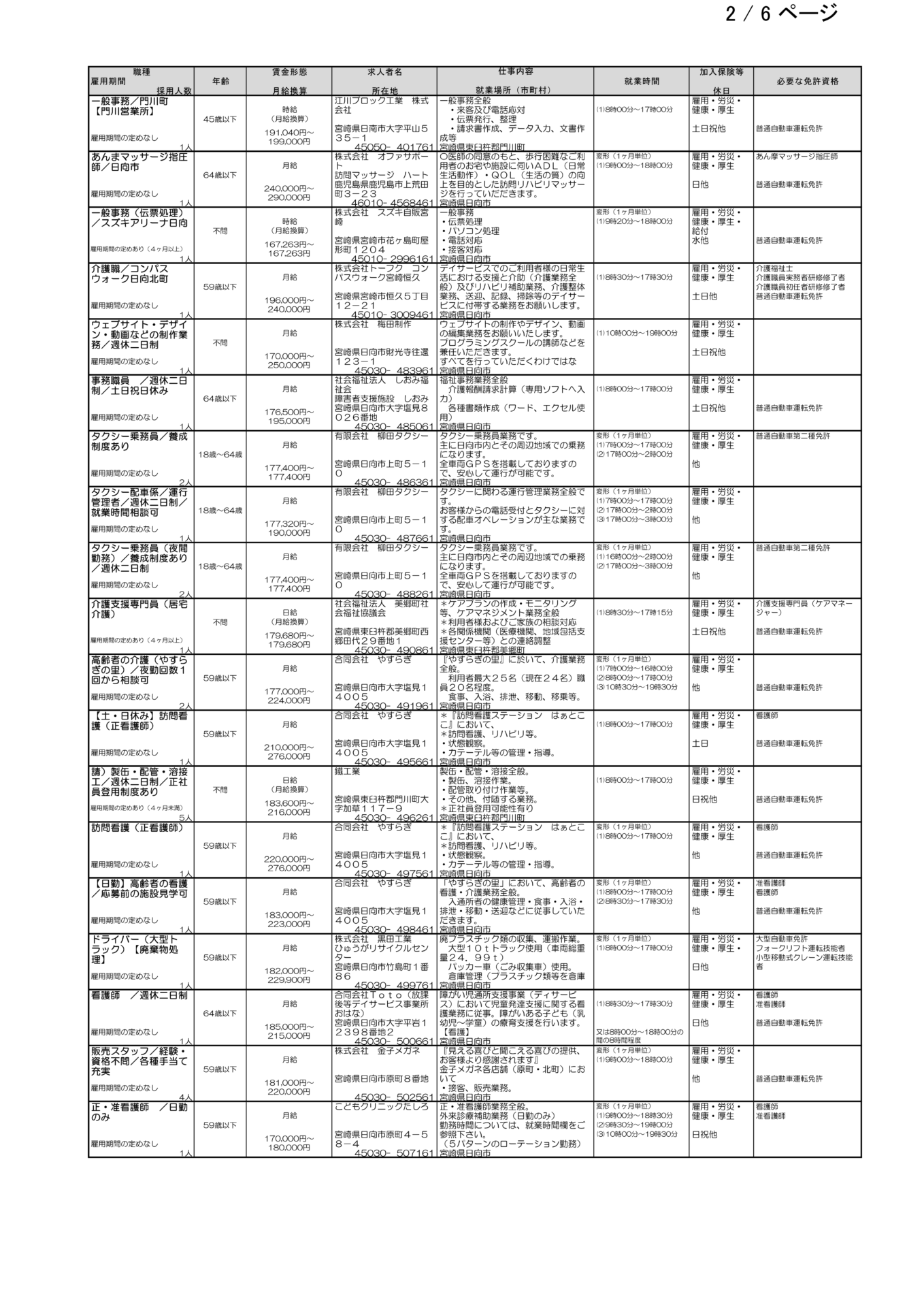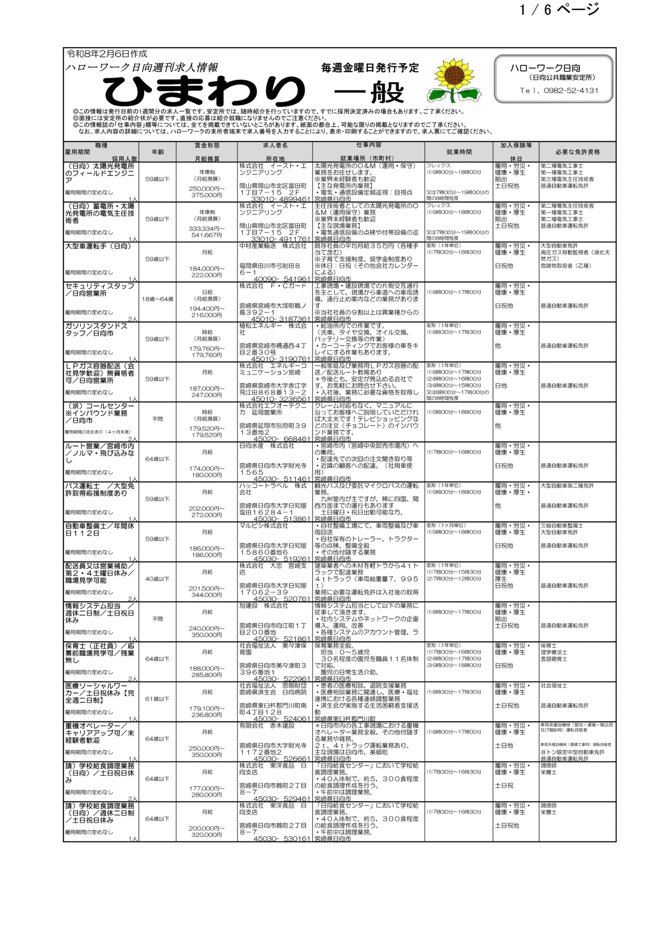 ハローワーク日向求人情報(フルタイム、パート)R8.2.6(金)発行