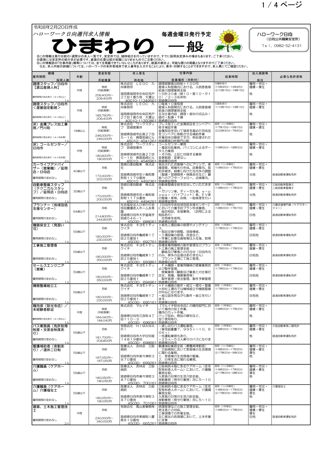 ハローワーク日向(日向公共職業安定所)が提供する求人情報誌を掲載いたします。