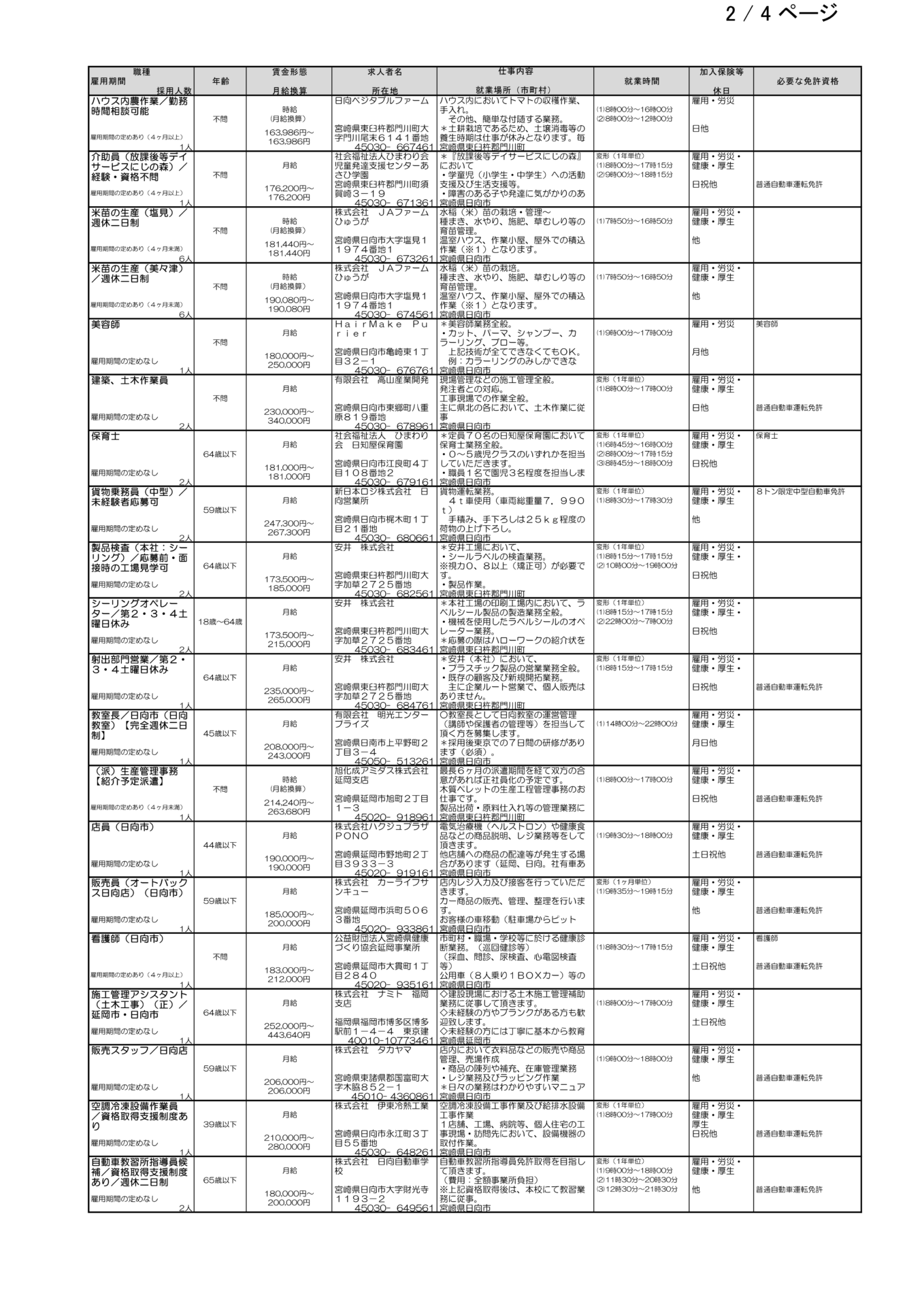 • この情報誌の「仕事内容」欄等については、全てを掲載できていないところがあります。紙面の都合上、可能な限りの掲載となりますのでご了承ください。なお、求人内容の詳細については、ハローワークの来所者端末かハローワークインターネットサービスで求人番号を入力することにより確認できます。