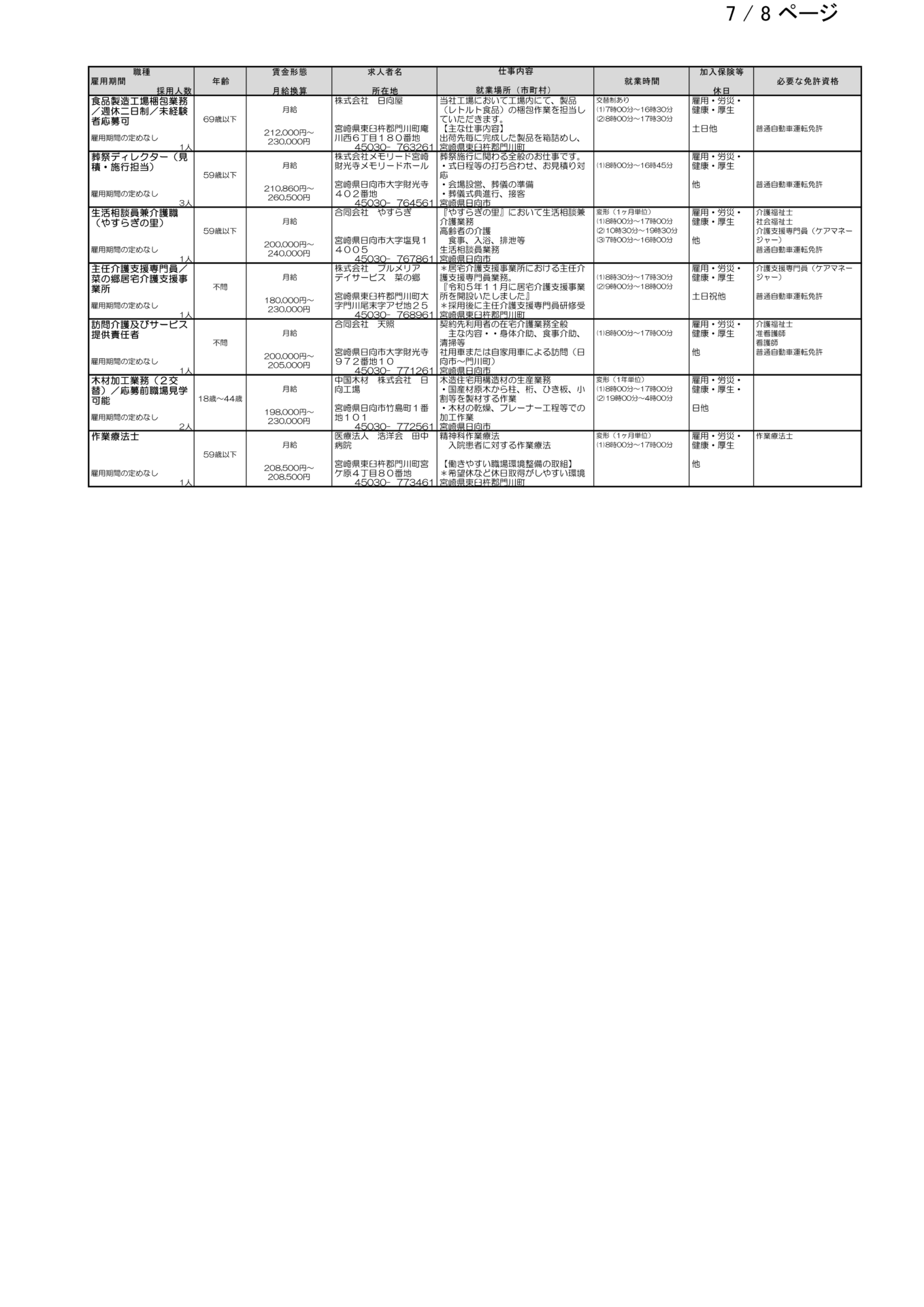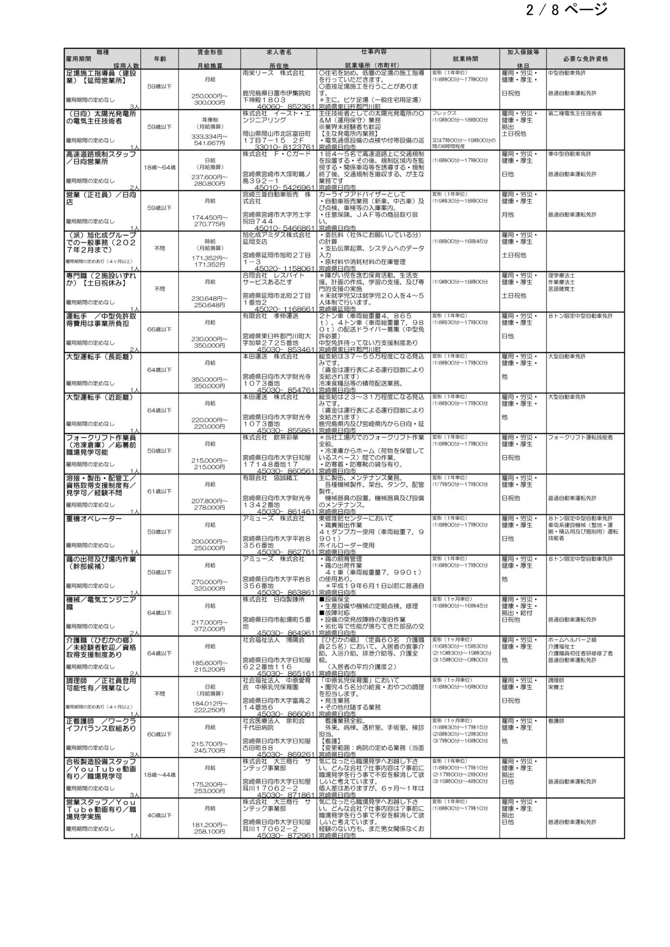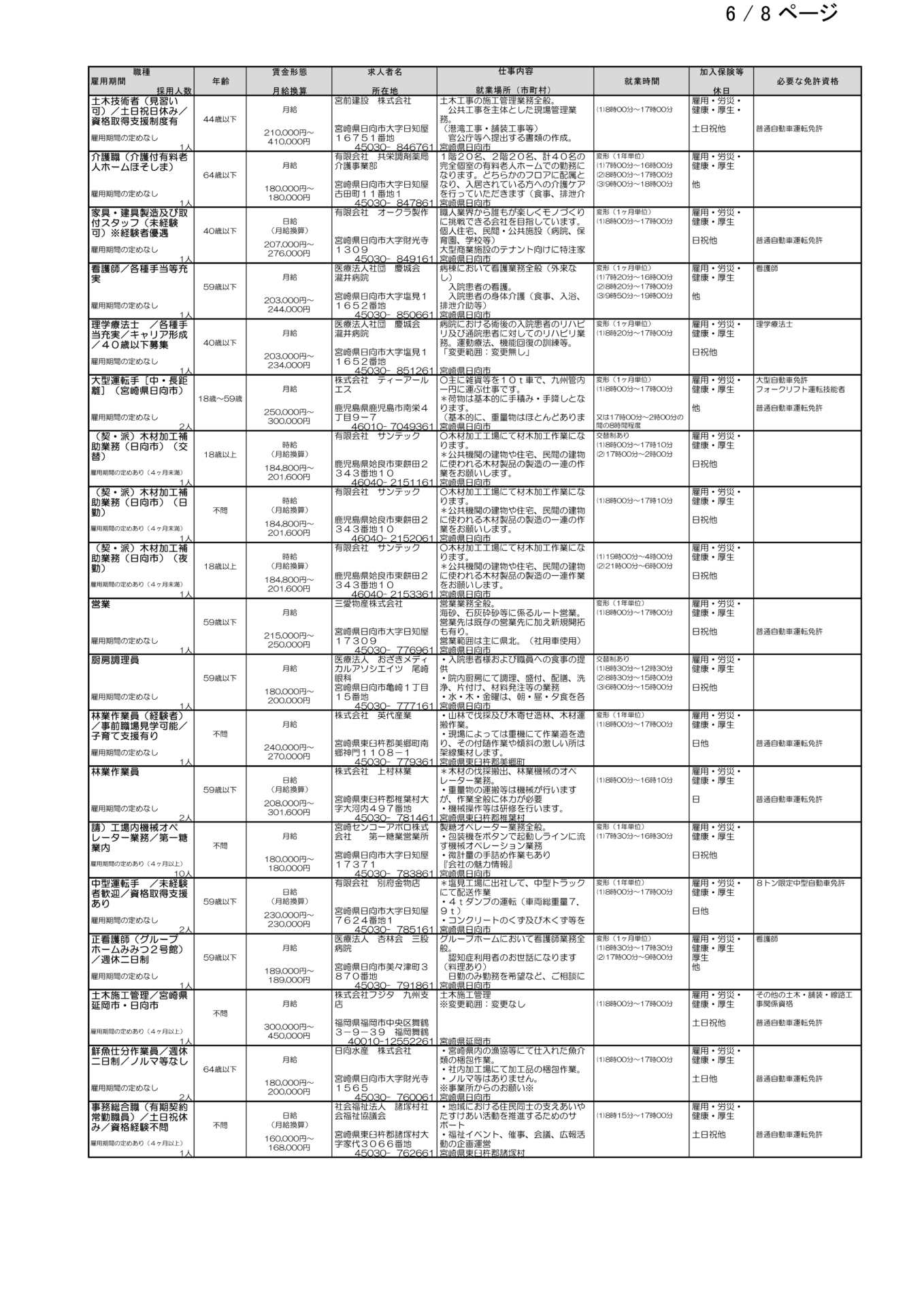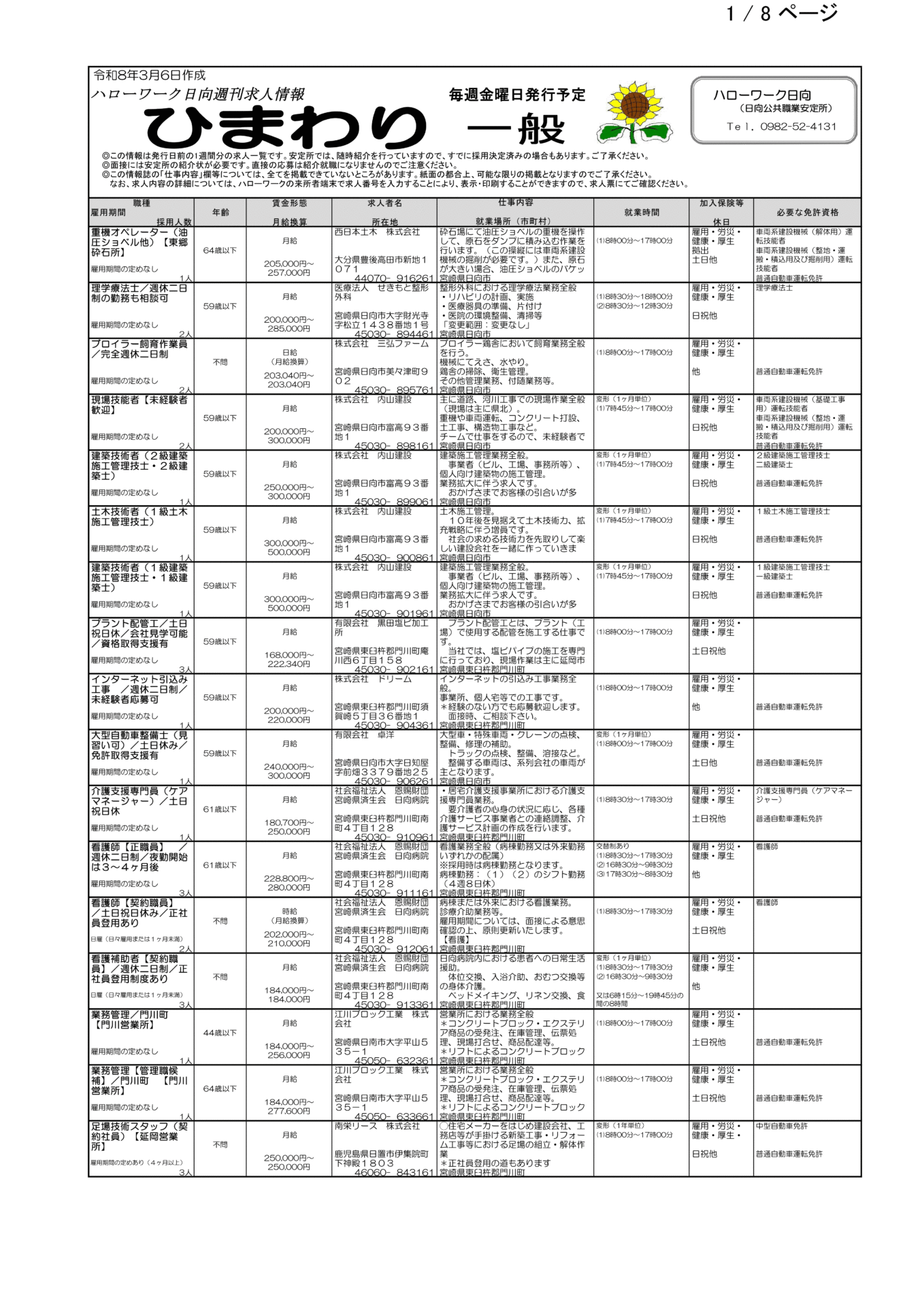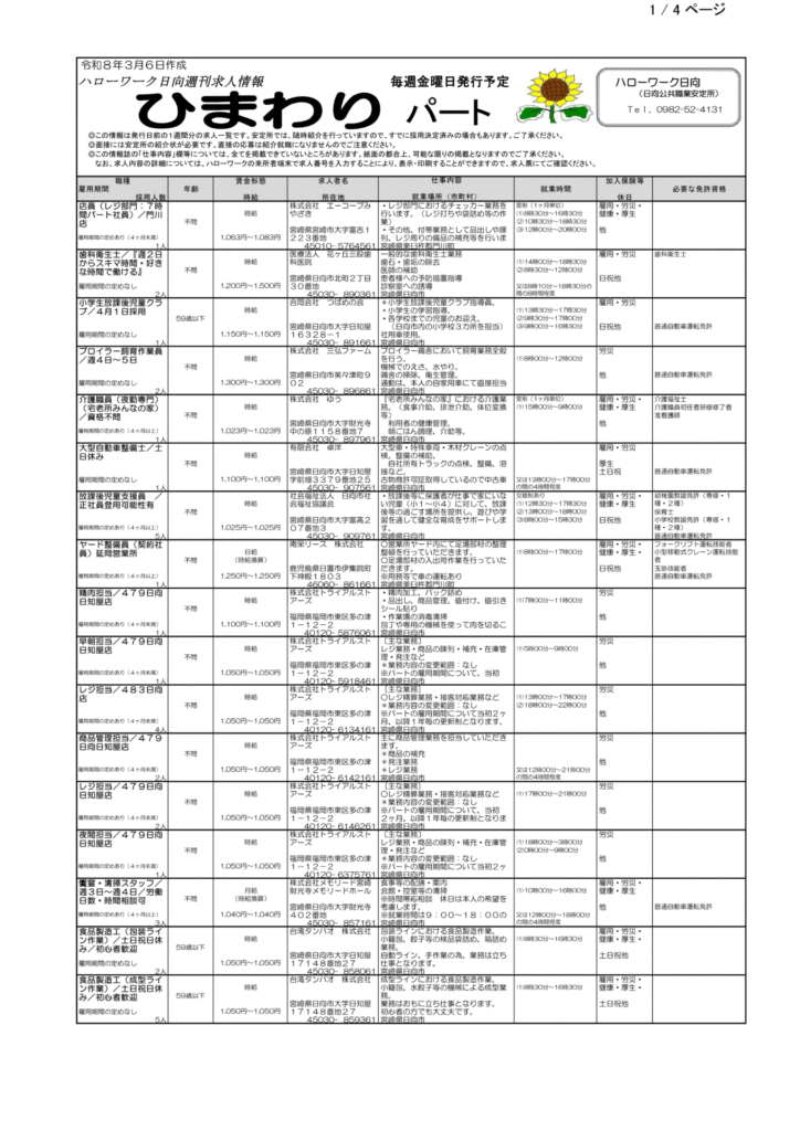 ハローワーク日向求人情報(フルタイム、パート)R8.3.6(金)発行