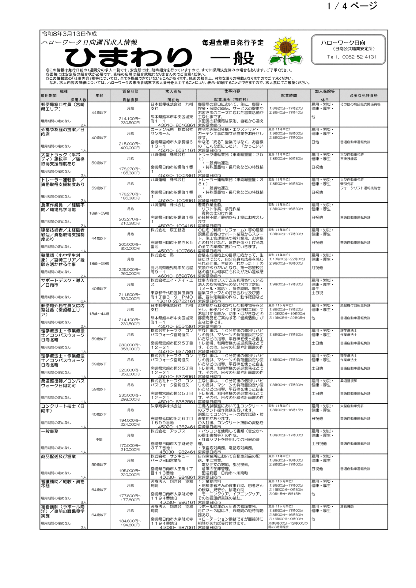 ハローワーク日向(日向公共職業安定所)が提供する求人情報誌を掲載いたします。