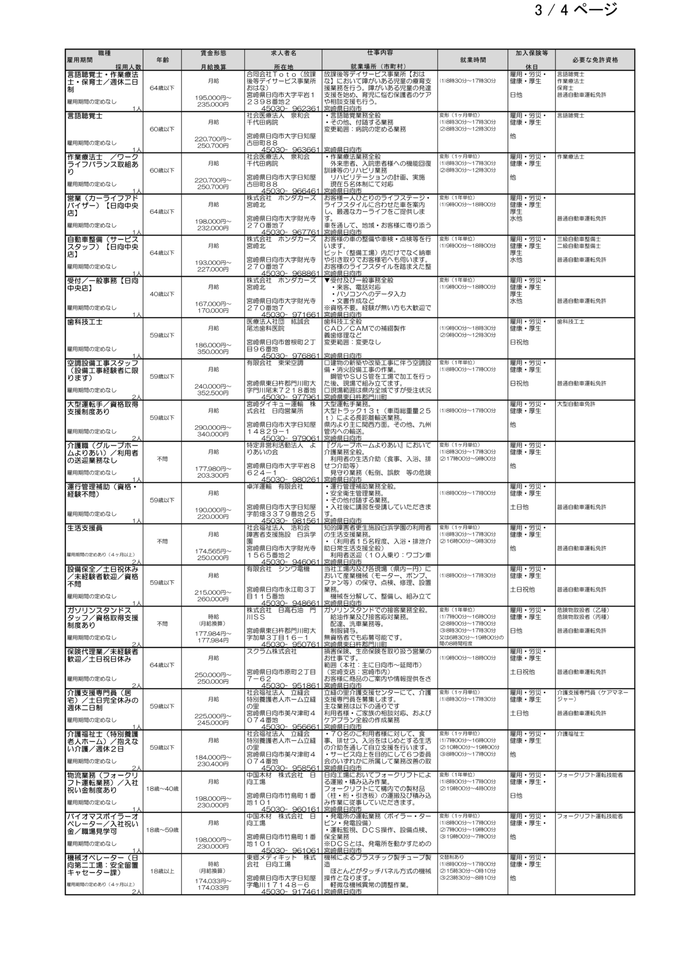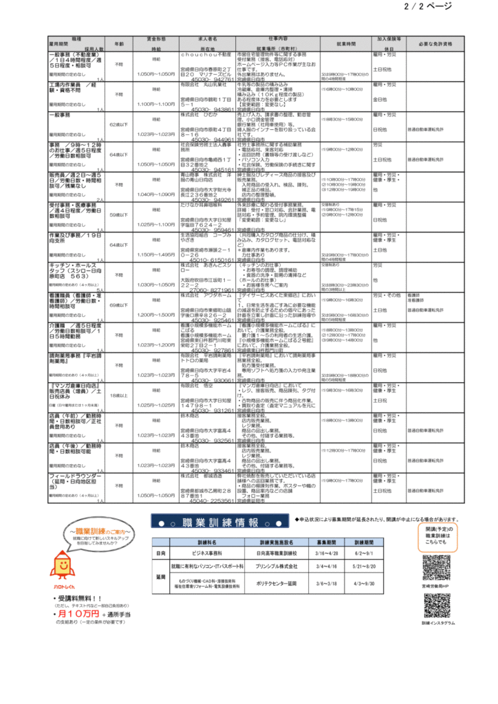 (複製) ハローワーク日向求人情報(フルタイム、パート)R8.3.13(金)発行