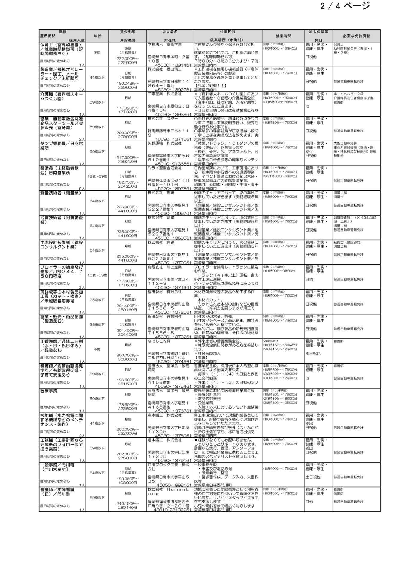 - 掲載している求人情報は発行日前の1週間分の求人一覧です。安定所では、随時紹介を行っていますので、すでに採用決定済みの場合もあります。ご了承ください。