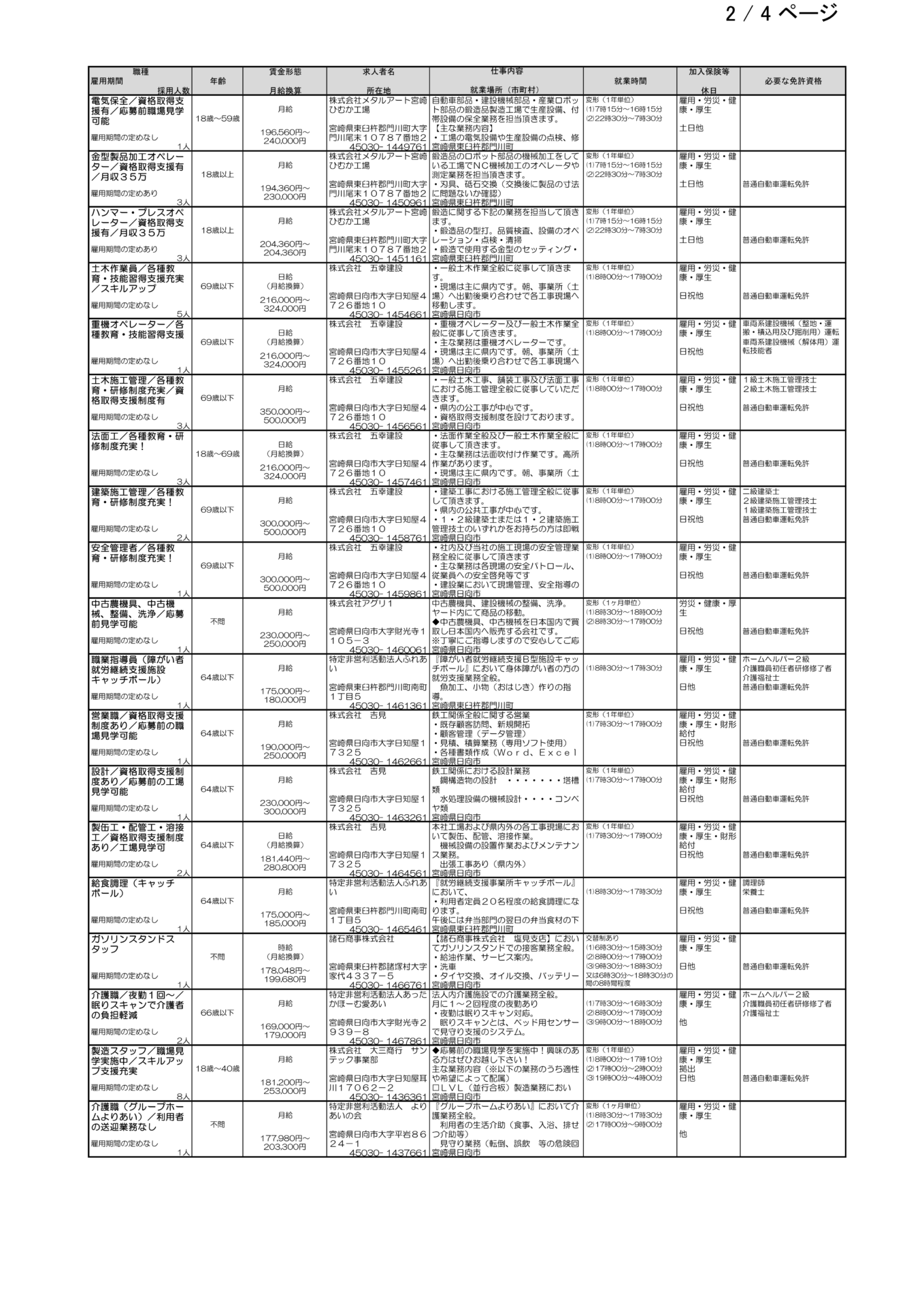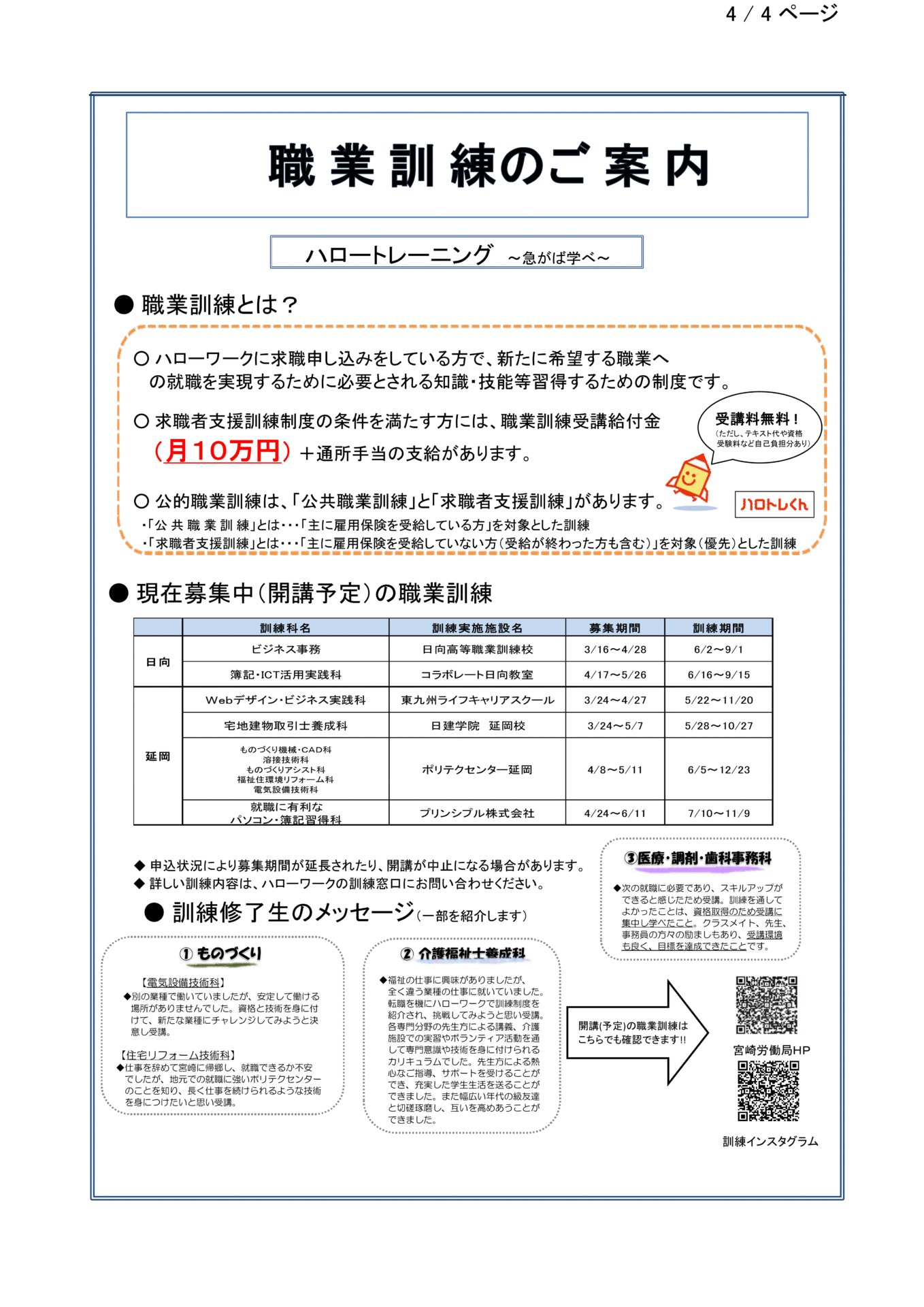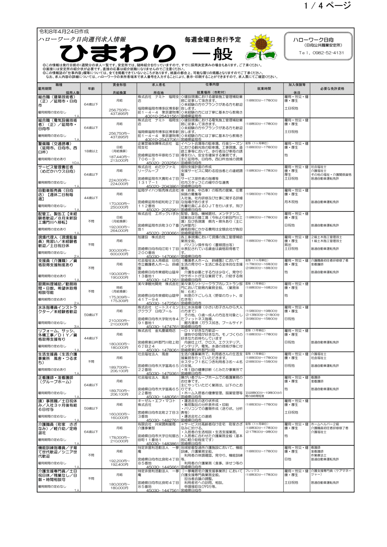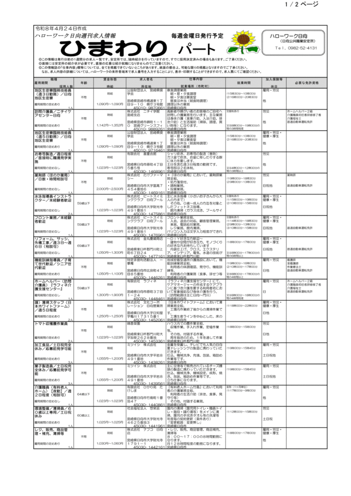ハローワーク日向求人情報(フルタイム、パート)R8.4.24(金)発行