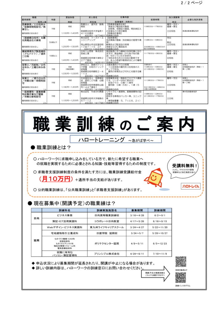 ハローワーク日向(日向公共職業安定所)が提供する求人情報誌を掲載いたします。