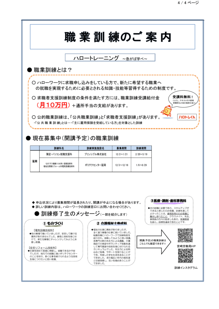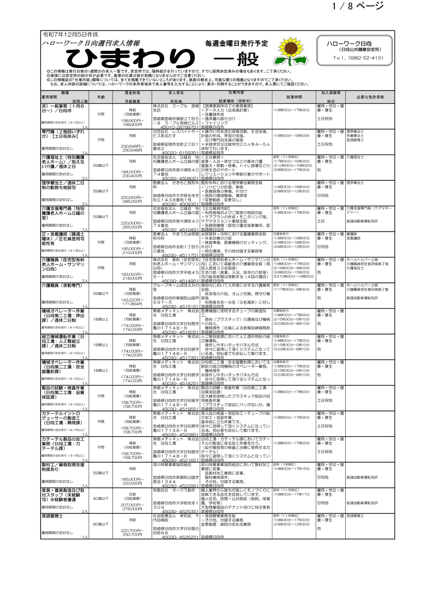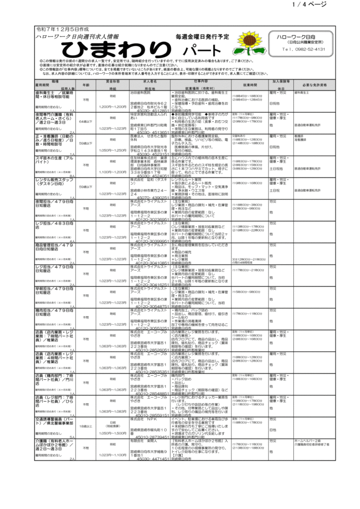 ハローワーク日向求人情報(フルタイム、パート)R7.12.5(金)発行