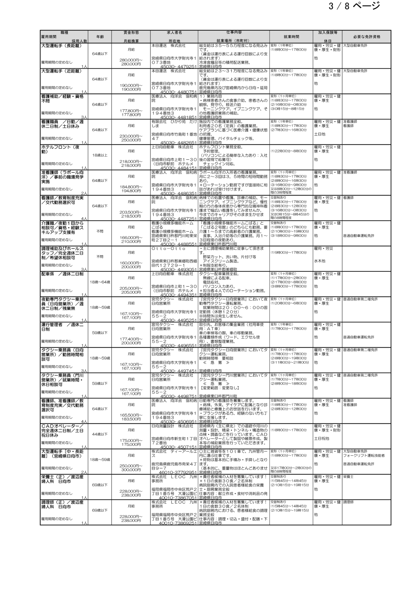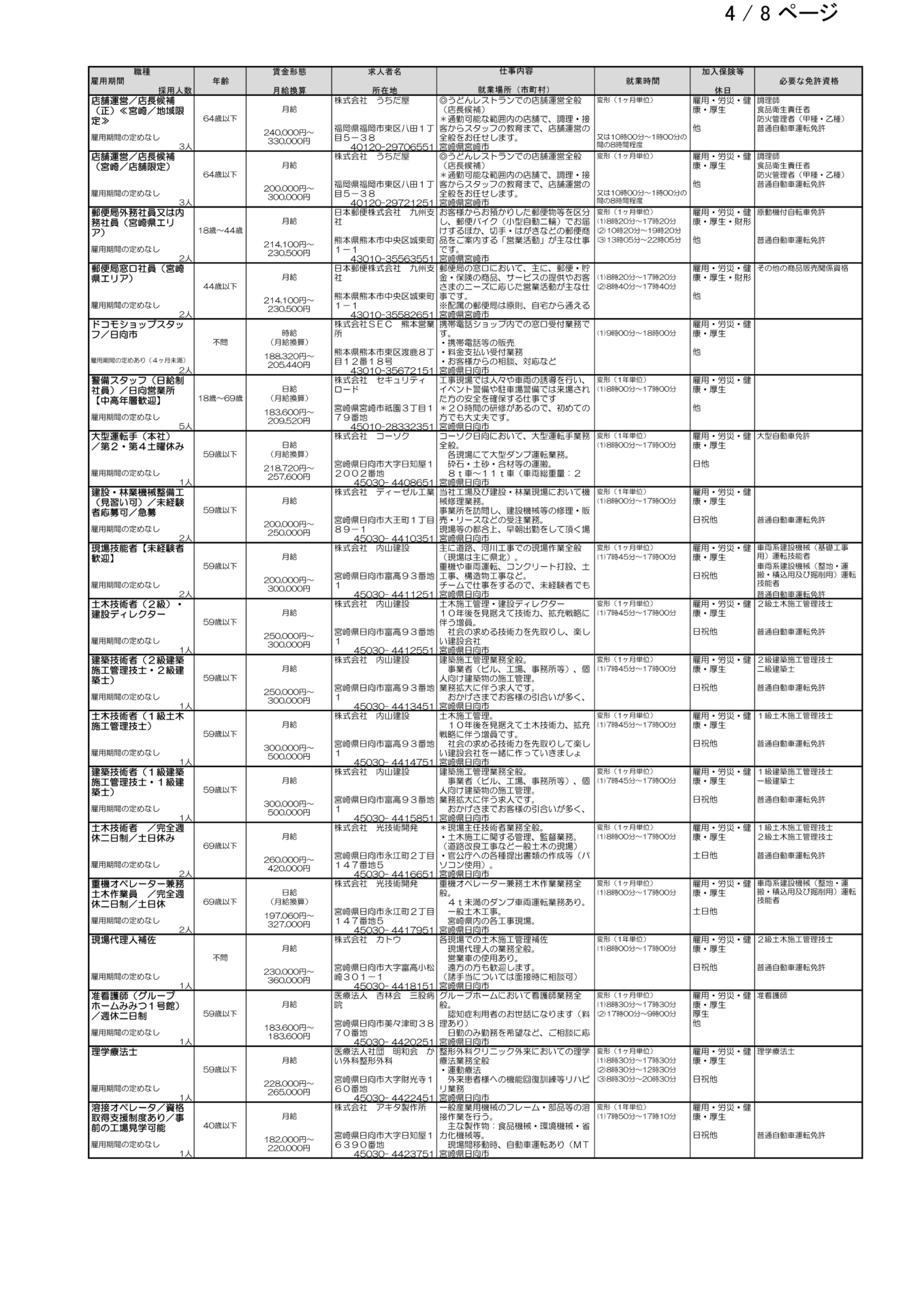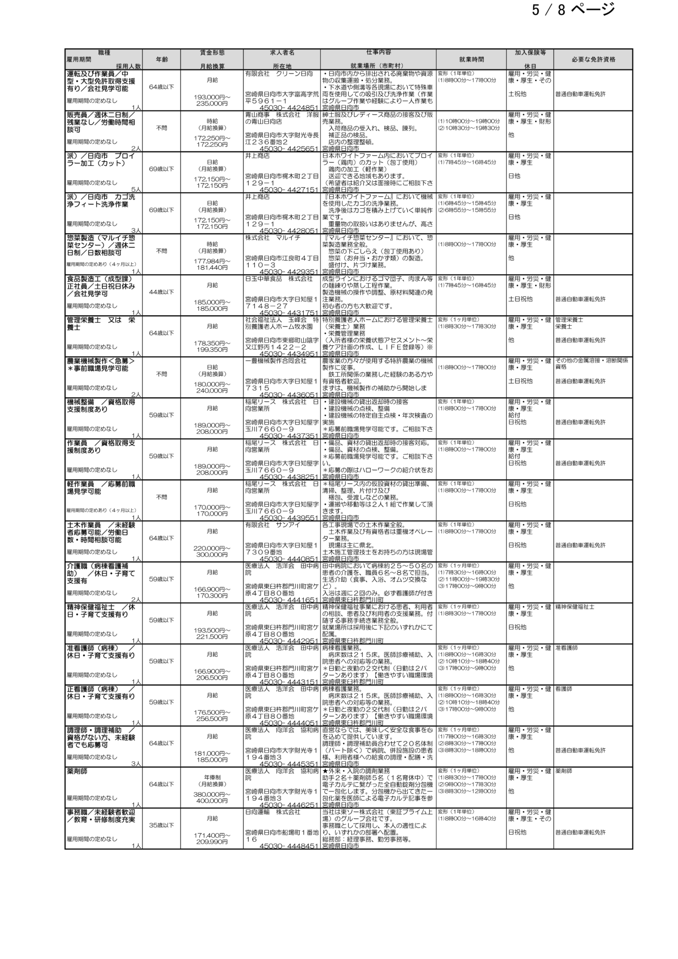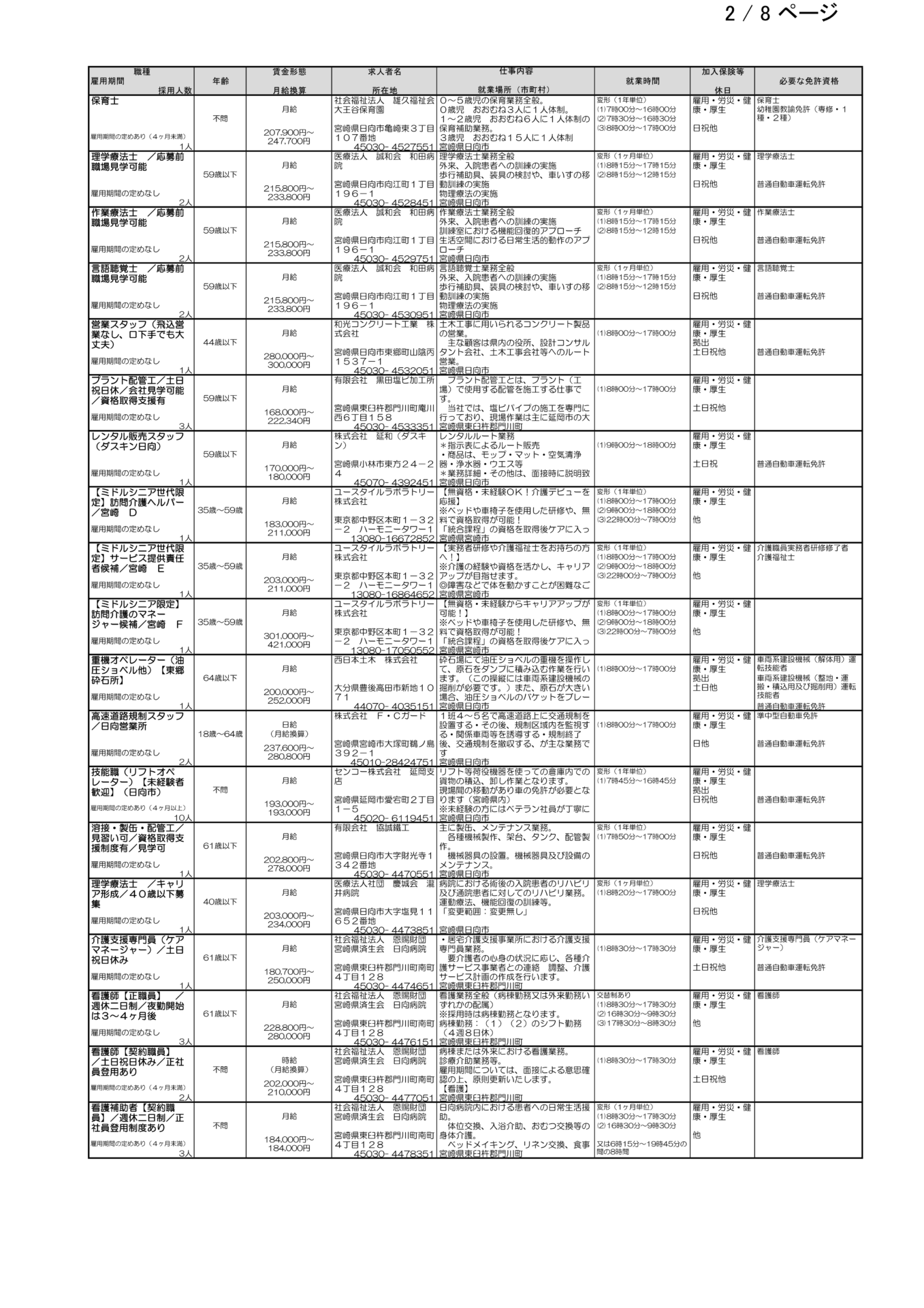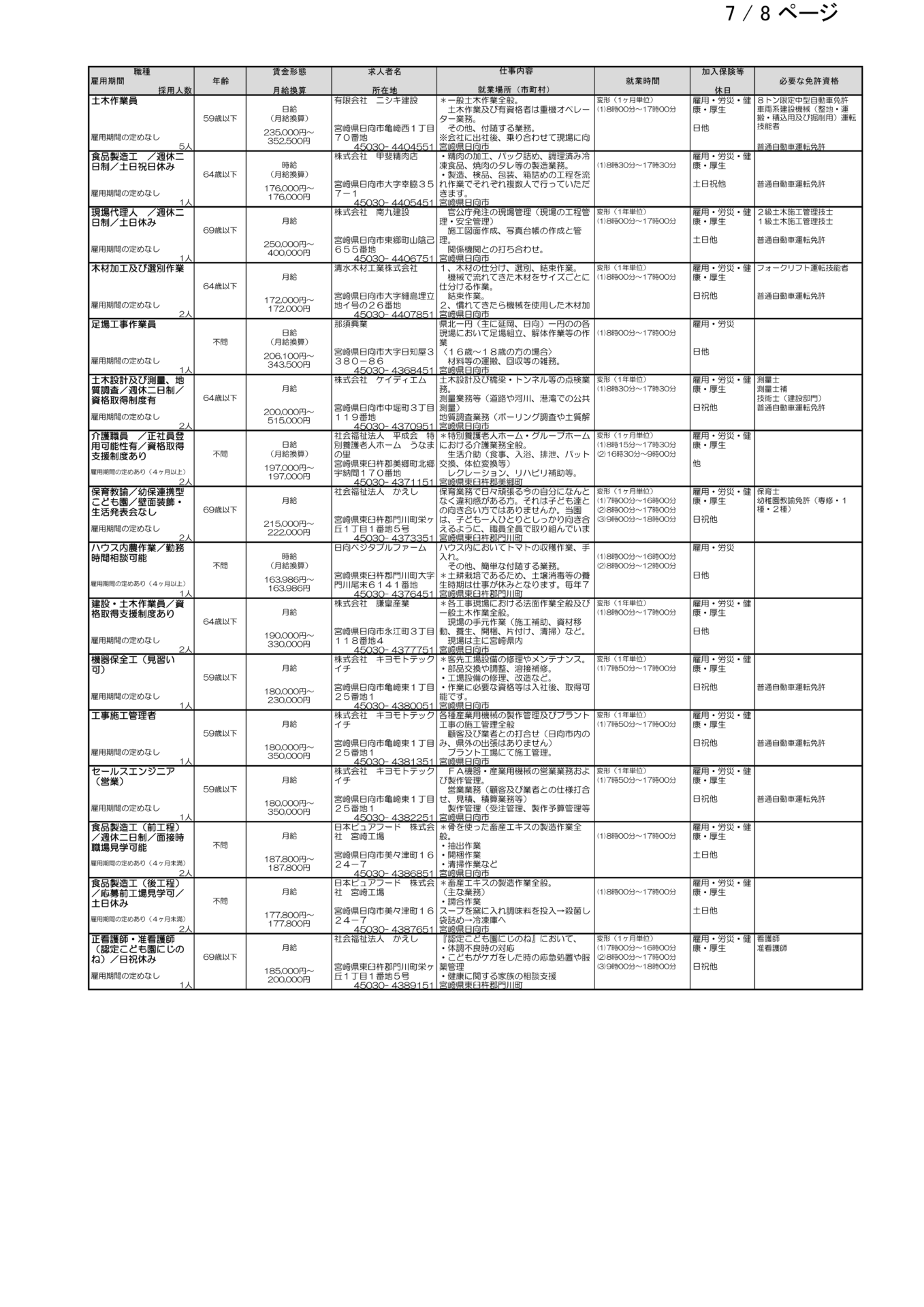 ・掲載している求人情報は発行日前の1週間分の求人一覧です。安定所では、随時紹介を行っていますので、すでに採用決定済みの場合もあります。ご了承ください。