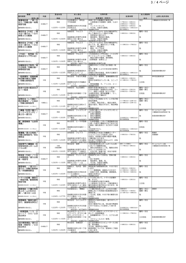 ・この情報誌の「仕事内容」欄等については、全てを掲載できていないところがあります。紙面の都合上、可能な限りの掲載となりますのでご了承ください。なお、求人内容の詳細については、ハローワークの来所者端末かハローワークインターネットサービスで求人番号を入力することにより確認できます。