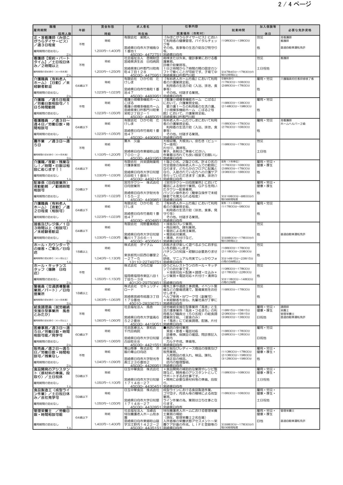 ・この情報誌の「仕事内容」欄等については、全てを掲載できていないところがあります。紙面の都合上、可能な限りの掲載となりますのでご了承ください。なお、求人内容の詳細については、ハローワークの来所者端末かハローワークインターネットサービスで求人番号を入力することにより確認できます。
