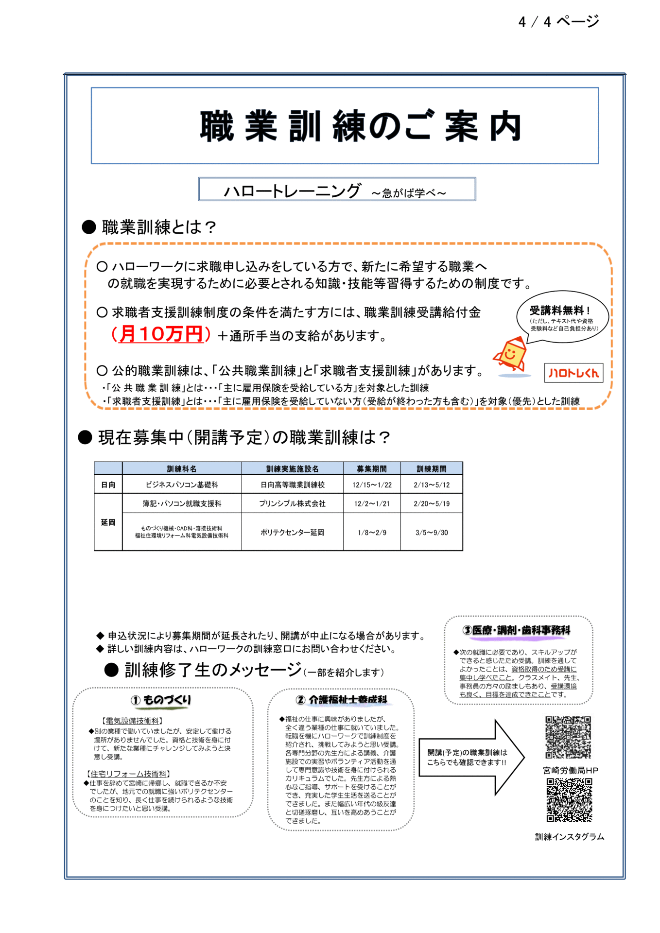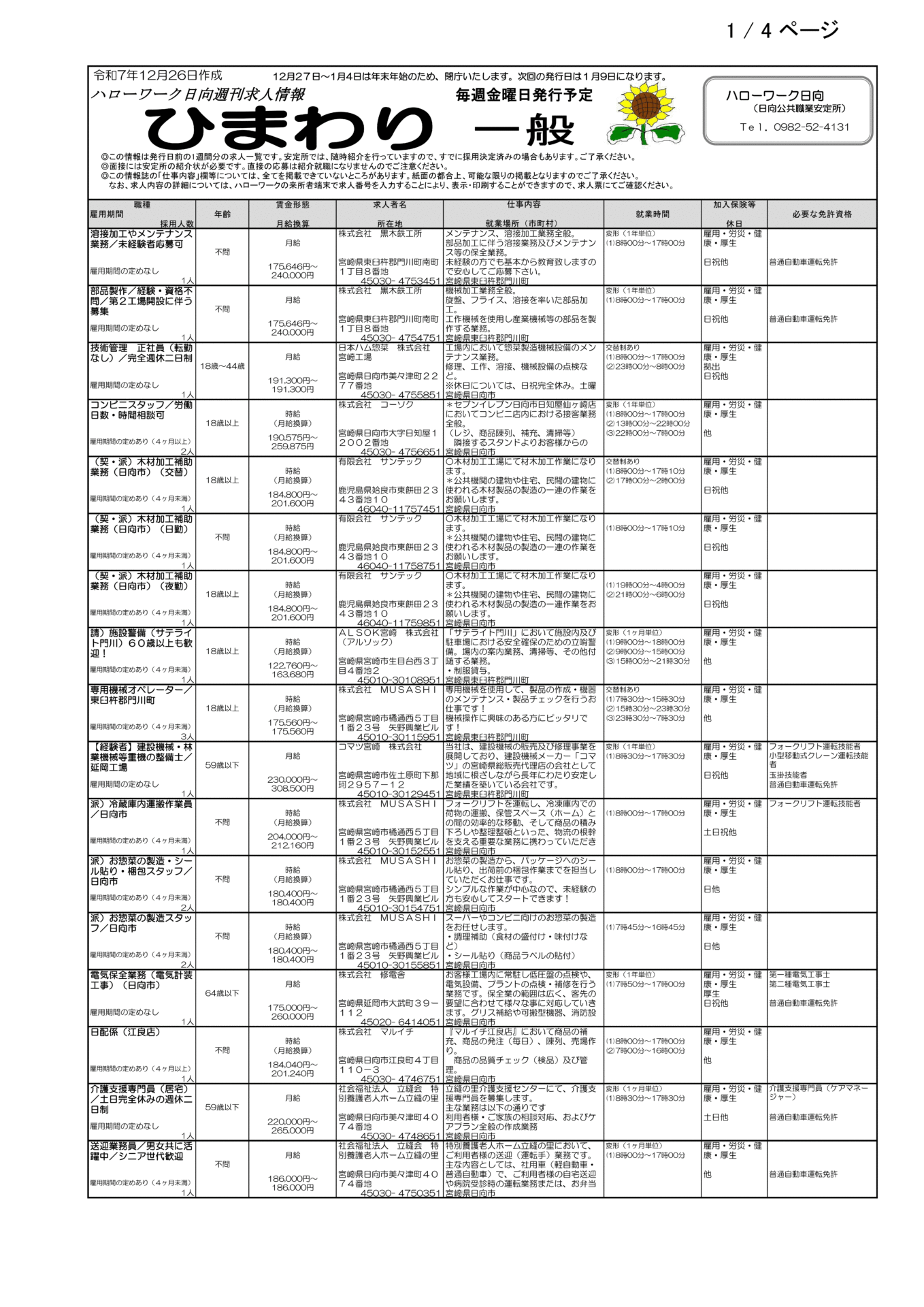 ハローワーク日向求人情報(フルタイム、パート)R7.12.26(金)発行