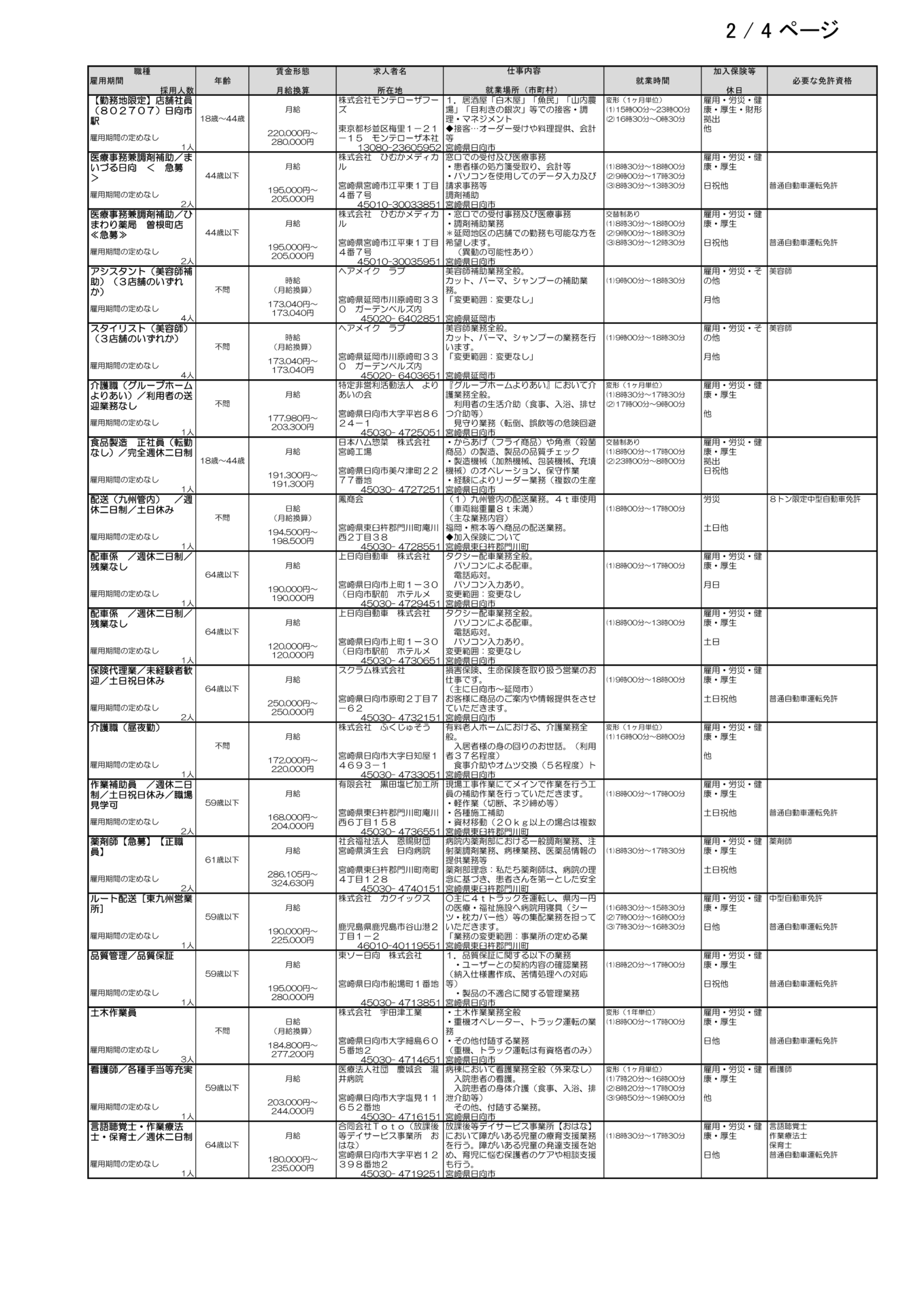 - この情報誌の「仕事内容」欄等については、全てを掲載できていないところがあります。紙面の都合上、可能な限りの掲載となりますのでご了承ください。なお、求人内容の詳細については、ハローワークの来所者端末かハローワークインターネットサービスで求人番号を入力することにより確認できます。