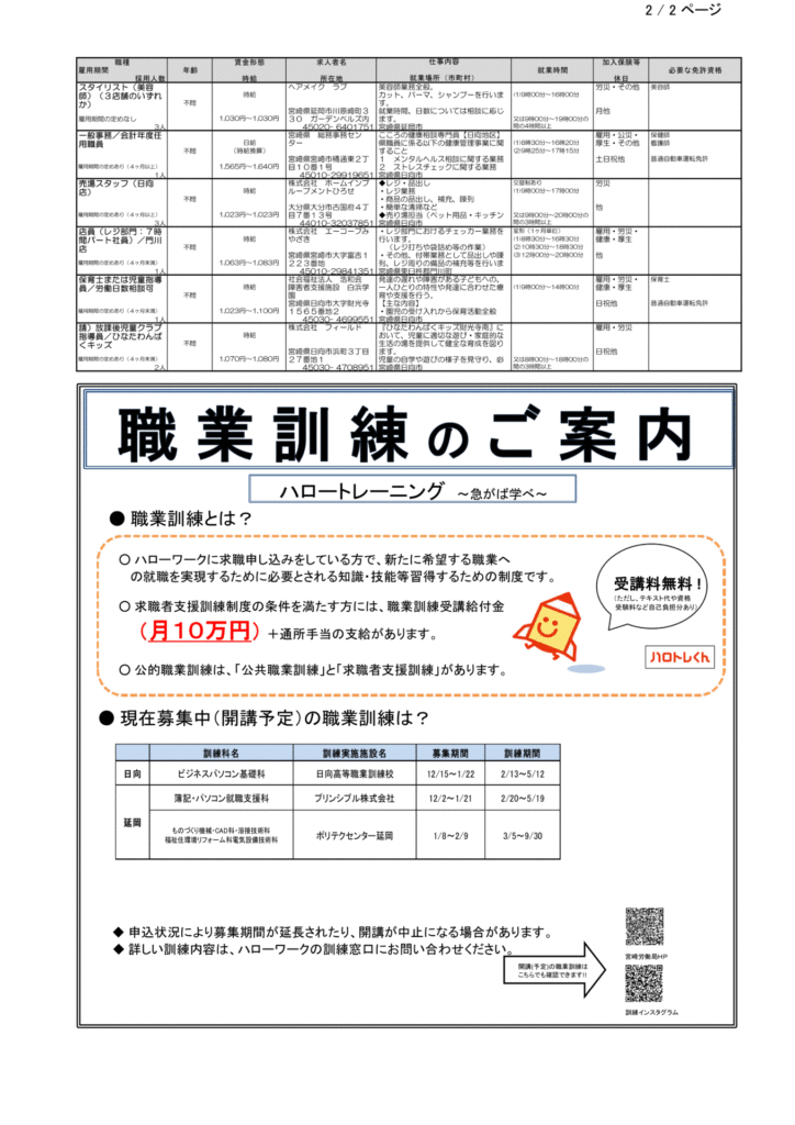 ハローワーク日向(日向公共職業安定所)が提供する求人情報誌を掲載いたします。